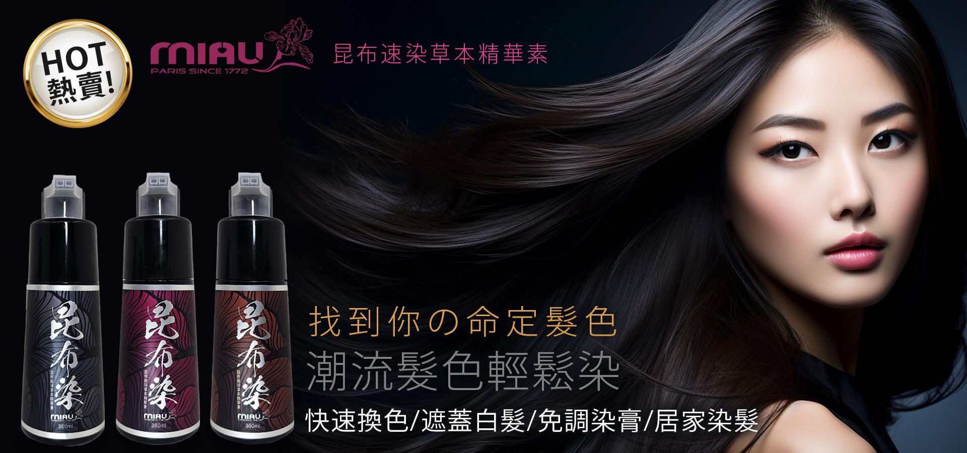 MIAU【昆布速染草本精華素】完美遮蓋白髮/染髮只要10分鐘/修護和鎖色的無臭配方/台灣生產〈無添加PPD/重金屬/甲醛/酯類防腐劑〉$3,840$1,380