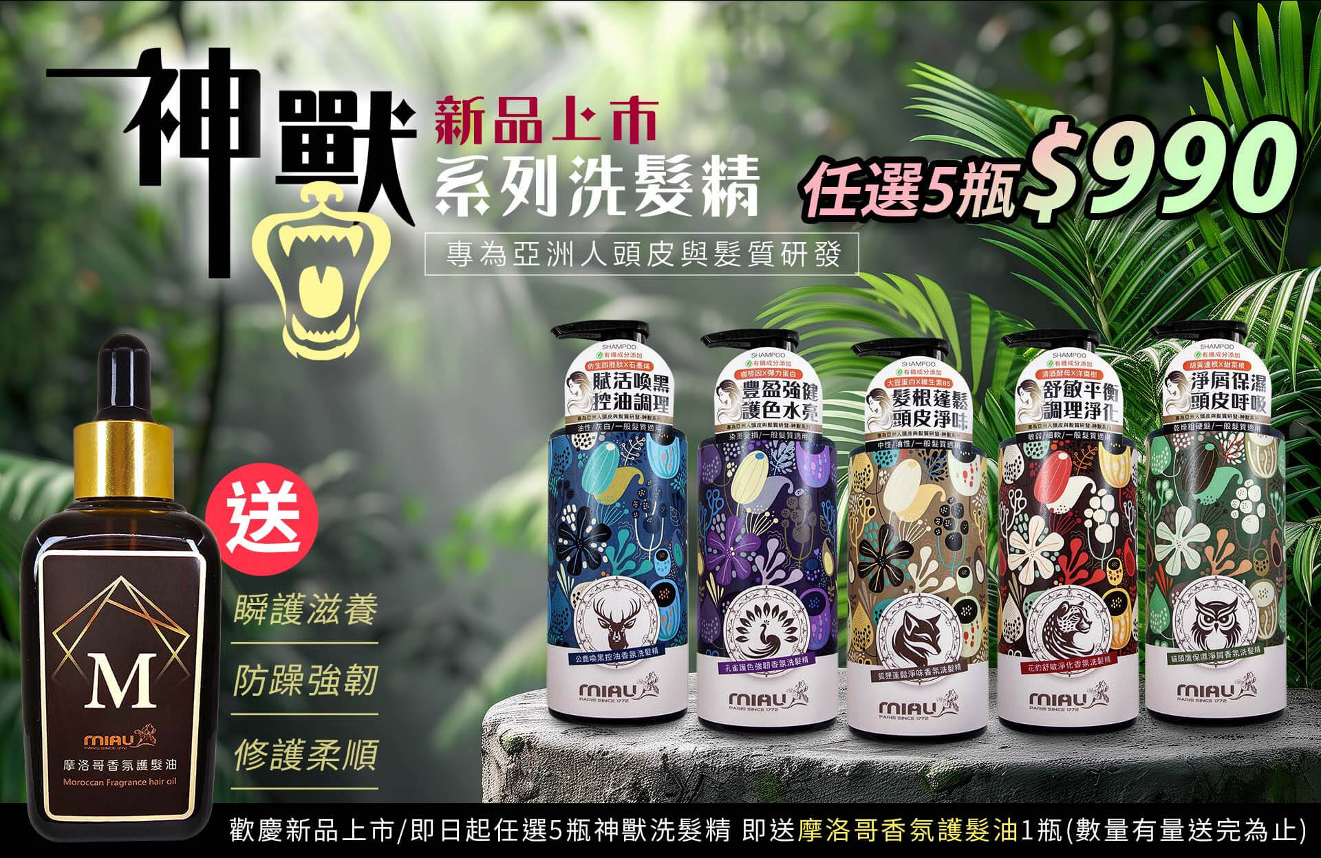 【MIAU】神獸系列洗髮精(500g/瓶) 急救洗髮精/草本養護/強健髮根/滋養頭髮/柔順有彈性/閃耀亮澤髮光/豐潤光采【任選5瓶$990再送摩洛哥髮油】$590$298