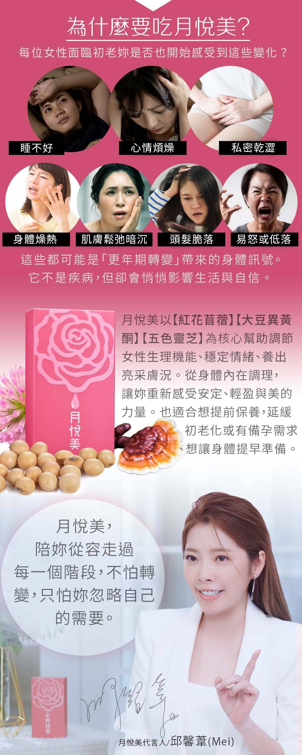 A4:30歲保養或進入更年期的女性族群,另外月月不順、情緒起伏、睡眠不穩定要備孕的妳也很適合。