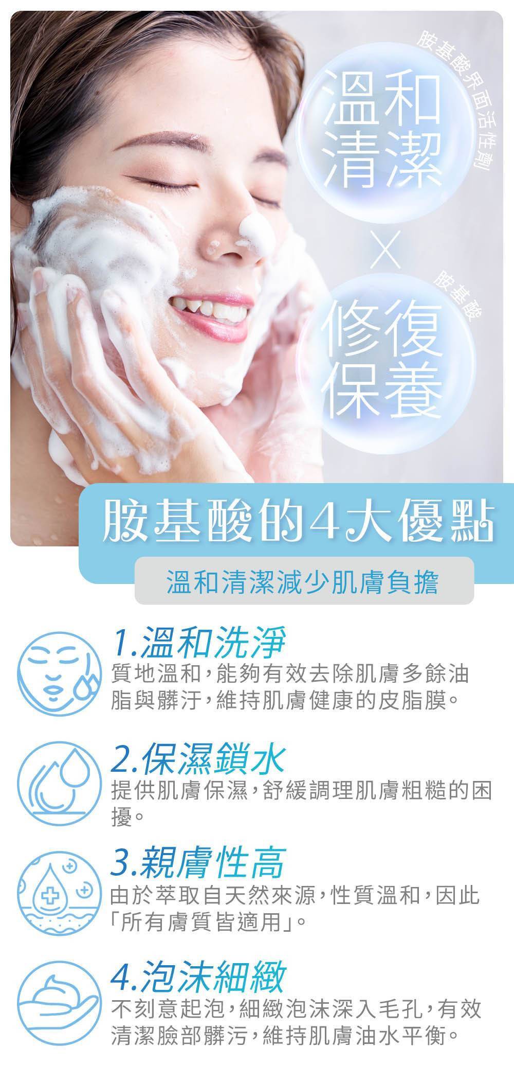 A:當然不會!胺基酸洗面乳含有豐富的保濕成分,能在清潔肌膚的同時提供水分和營養,使肌膚保持水潤和光滑、洗完不會有乾澀感。
